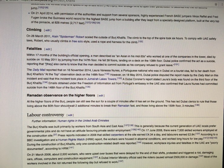 In the article, “The Internet is censored inside the UAE. News that could reflect poorly on the country or important people, including the ruling royal family, is blocked. There is a brief entry about Laura’s suicide on the Wikipedia page of the Burj Khalifa. Leona has attempted to add more detail about Laura’s death, but it has been edited out several times by a user named Emir of Wikipedia. Activity logs show the Emir of Wikipedia has a dedicated interest in editing the Wikipedia pages of Dubai’s elite ruling class and some of the Emirate’s most significant organisations.
