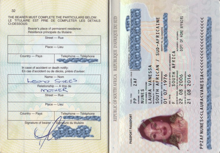 On page 32 of Laura’s South African passport: