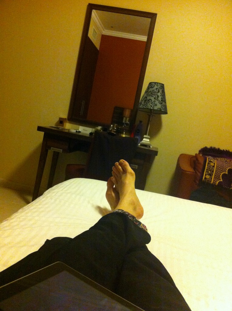 A photograph which Laura took, lying on her bed at the Abidos Hotel/Apartments Dubailand on 9 November at 01:57. GPS data included. The photograph was taken at the Abidos Hotel/Apartments Dubailand.